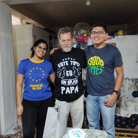 Celebrando cumpleaños y mi tío siempre contento y bailarín