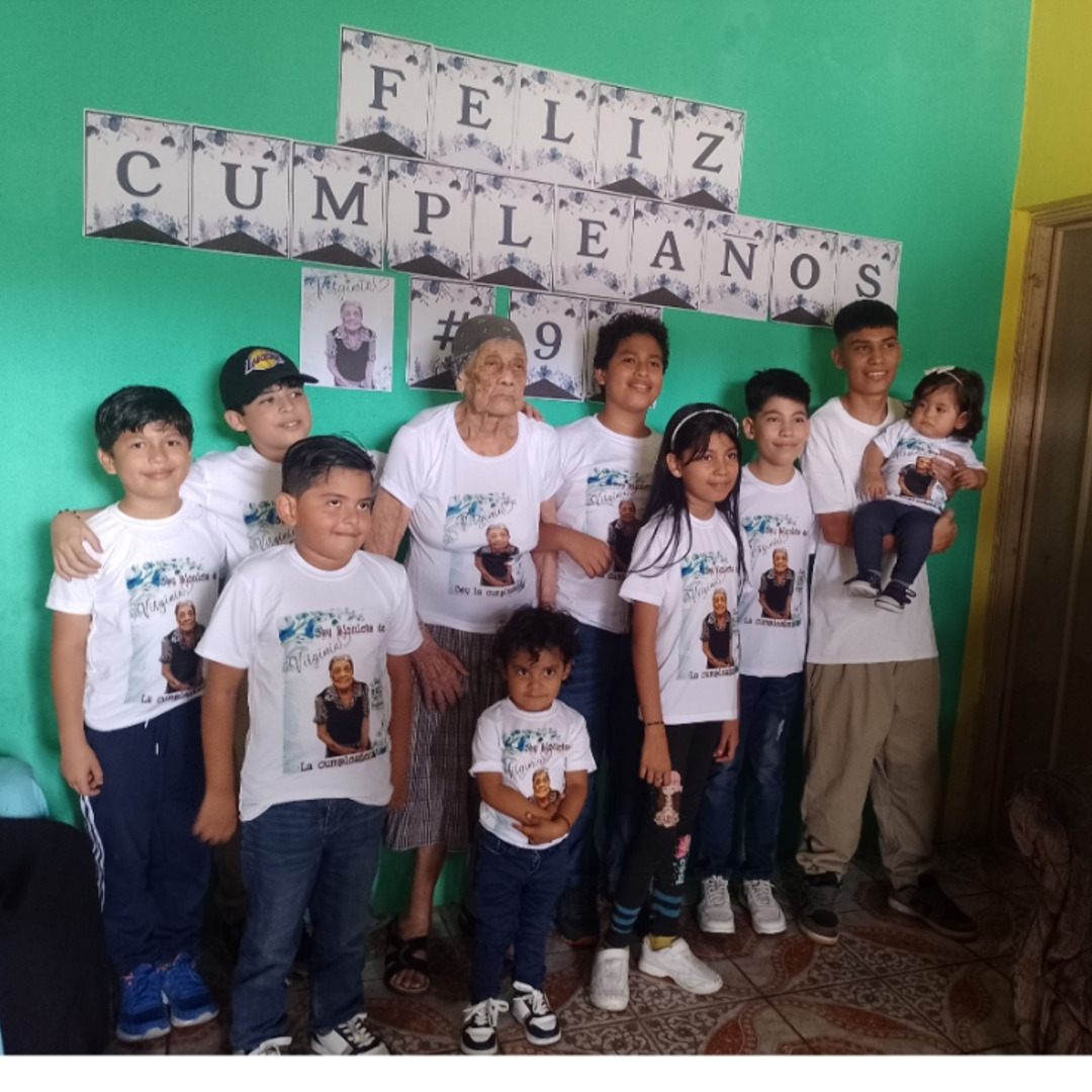 Rodeada de sus Bisnietos que le aman"