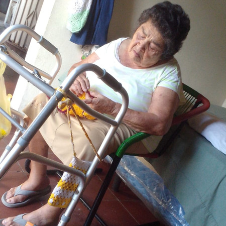 Aqui esta mi abuelita tejiendo por última vez en diciembre