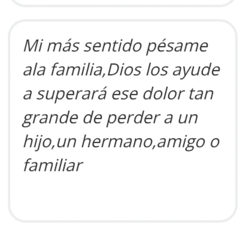 De parte de todo el equipo de Funerales Gonzalez, nuestro más sincero pésame. No duden en solicitarnos ayuda para cualquier cosa que necesite.