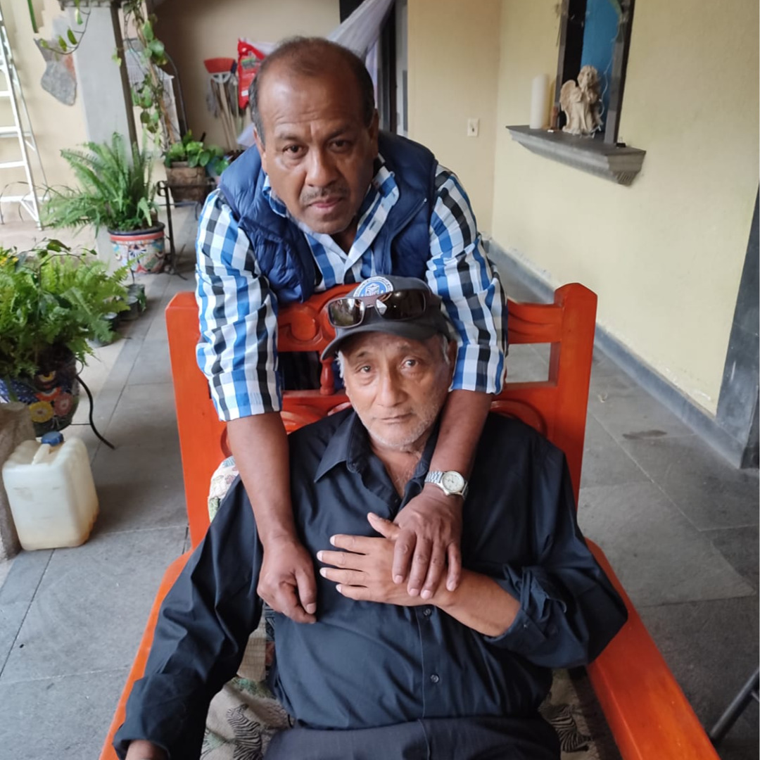 Cesar, Augusto y Sr. Adrián en el jardín de la casa
