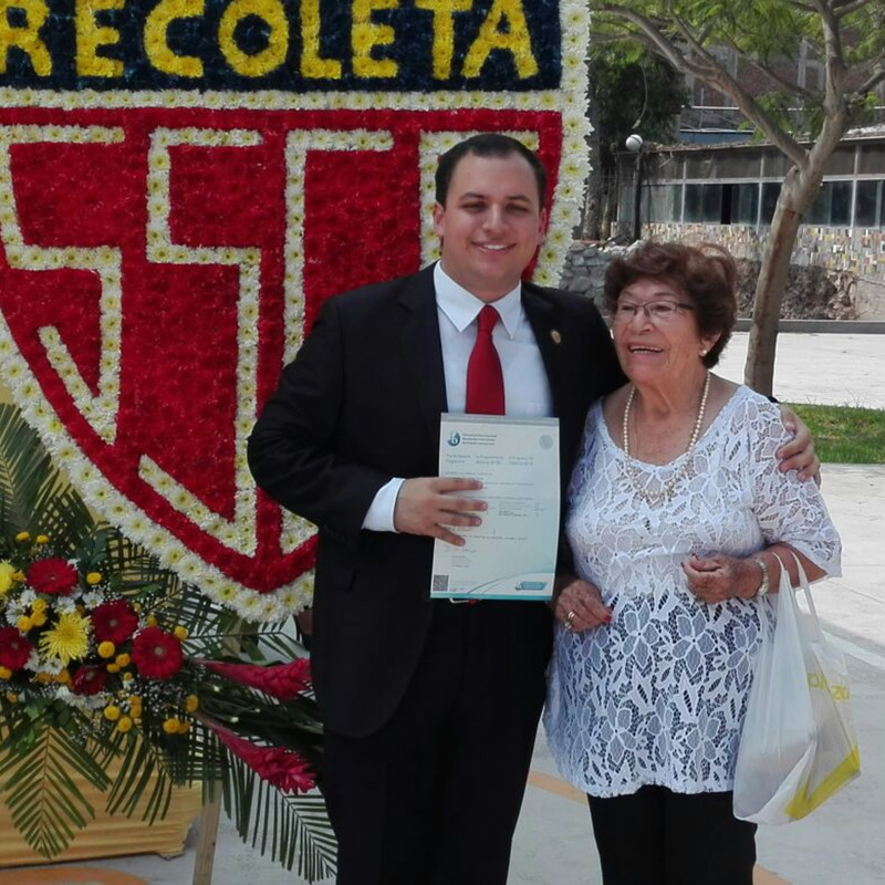 Mi mama con su nieto Diego en la graduacion de su colegio