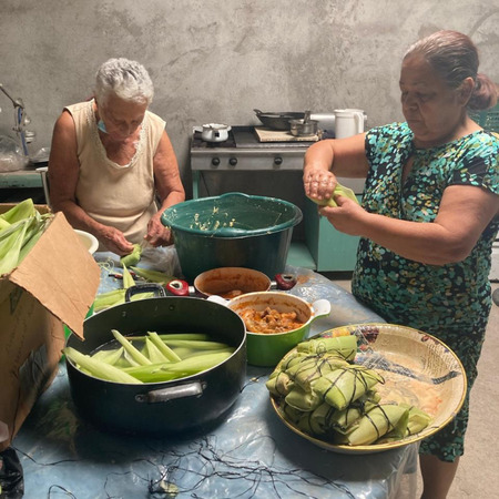 En la tamaleada con su cuñada Emelina , en Lamani