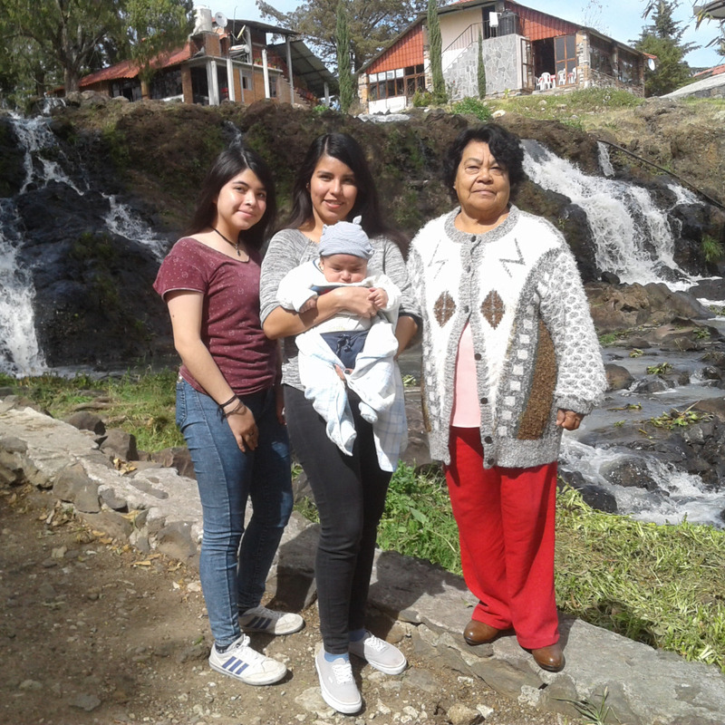 Con sus nietas y bisnieto