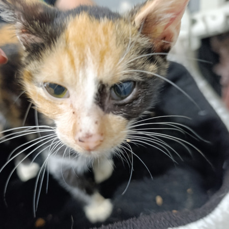 Te conocí y me ganaste con tu mirada, te mirabas tan tierna ese día, esperamos verte pronto se que tú cuerpo no está pero tu linda alma se queda en nuestros corazones especialmente con tu mami gatuna humana que te amo te seguirá amando